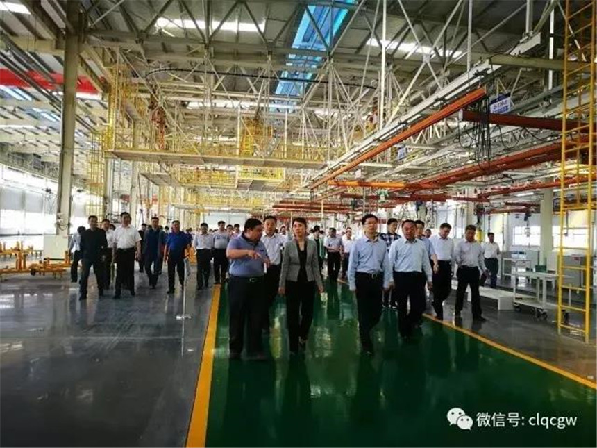 原湖北省副省长(左二)参观程力商用车工业园崭新的设备和生产线。