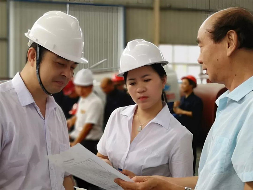 随州市市委书记陈瑞峰(左二)、曾都区区委书记何运平(左一),在程阿罗总经理(右二)的陪同下,调研指导工作。